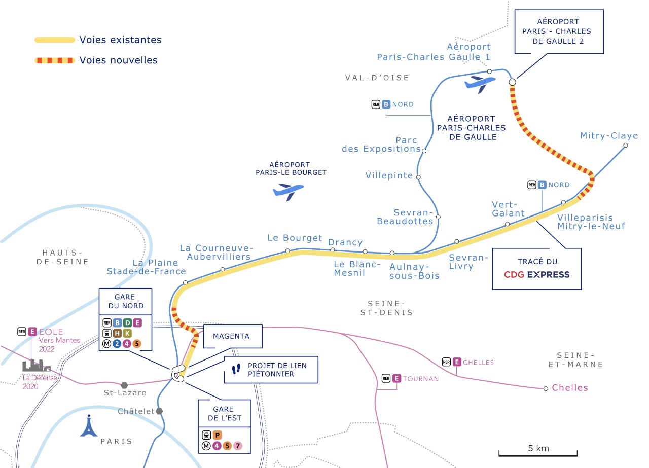- 20 minutes pour relier l’aéroport Paris-Charles de Gaulle et le centre de Paris.